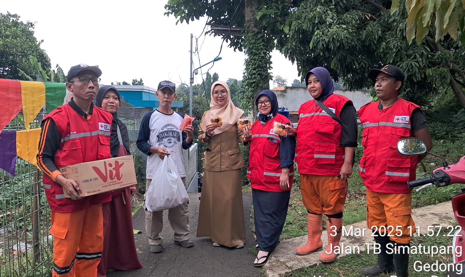 Di Kelurahan Gedong, Kecamatan Pasar Rebo, para relawan PMI Jakarta Timur dengan penuh semangat mendistribusikan 250 pcs roti dan 5 dus air mineral untuk warga yang sedang menghadapi dampak dari banjir. Meskipun sedang berpuasa, mereka tetap berusaha memastikan bahwa bantuan sampai tepat waktu dan dapat meringankan beban masyarakat yang membutuhkan.